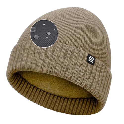Giovici Wooly Waterproof Beanie Hat for Men and Women - Stretchy Fleece Lined Waterproof Beanie Hat - Thick Warm Mens Hats for Cold Winter Weather - Premium Beanie Hats for Men UK (Beige)