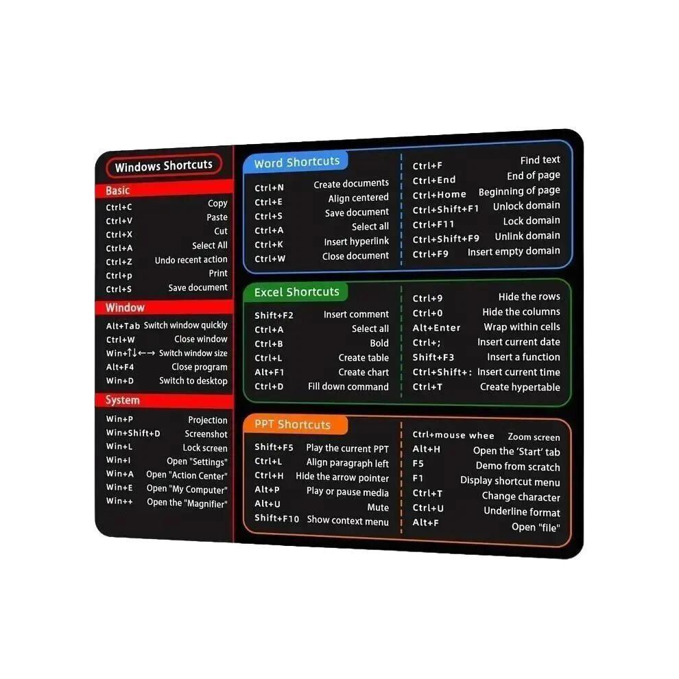 Large MS Office (Excel PowerPoint Word) Windows Shortcuts Mousepad | Stitch PPT