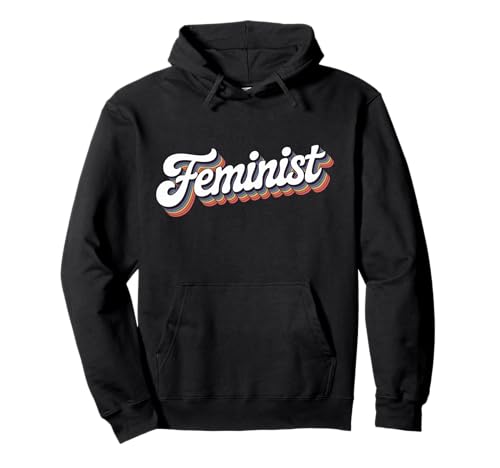 The word Feminist | Retro rainbow design that says Feminist Pullover Hoodie