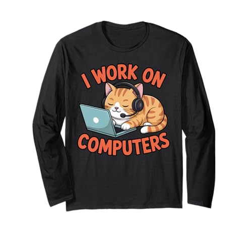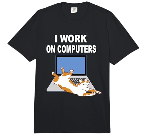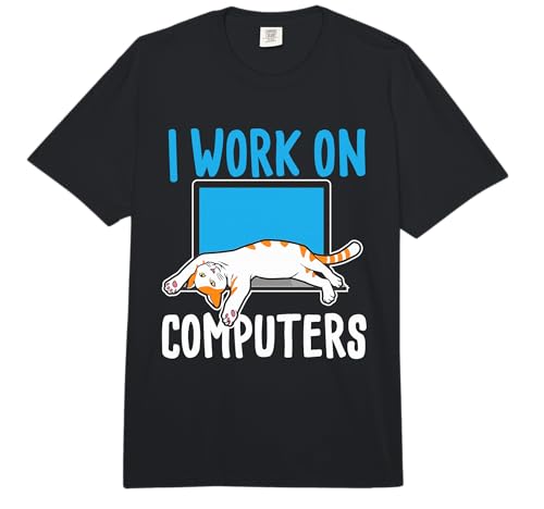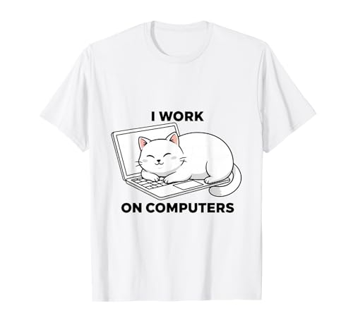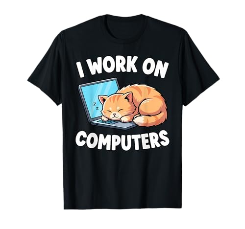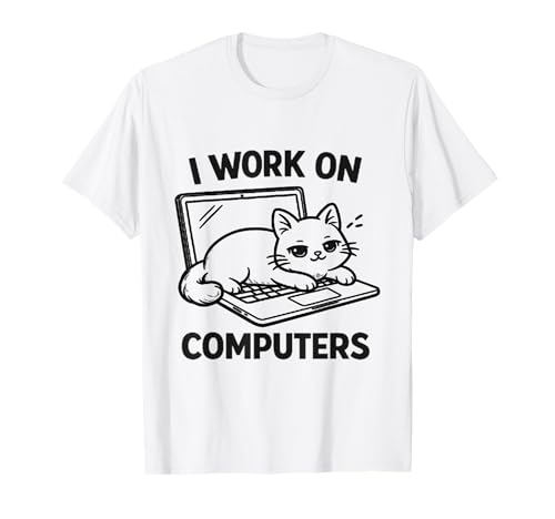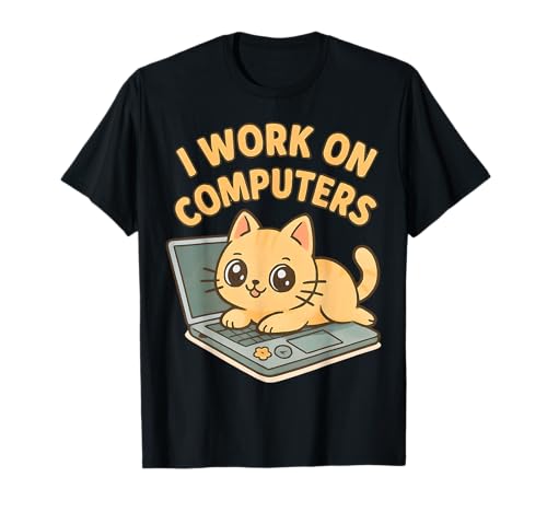 I Work On Computers - Funny Cat on Computer Geek T-Shirt