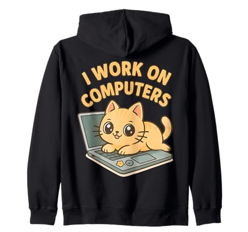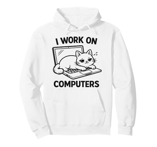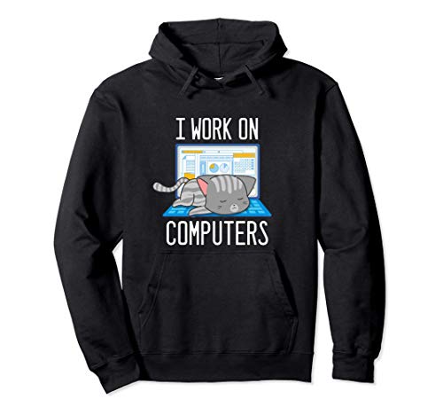 I Work On Computers - Funny Cat on Computer Geek Pullover Hoodie