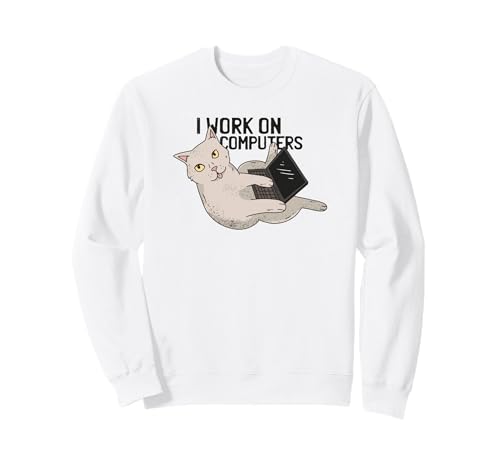 I Work On Computers Funny Cat Lover Kitty Laying Down 2025 Sweatshirt