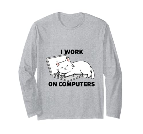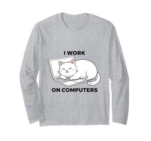 Funny I Work On Computers Cat Shirt Funny Computer Cat Long Sleeve T-Shirt