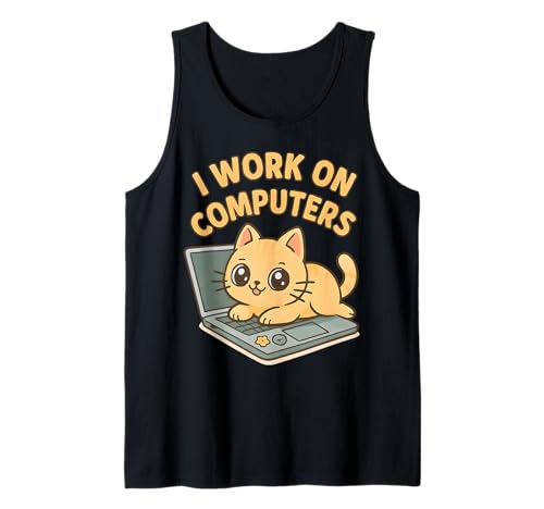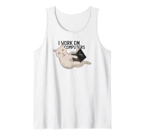 I Work On Computers Funny Cat Lover Kitty Laying Down 2025 Tank Top