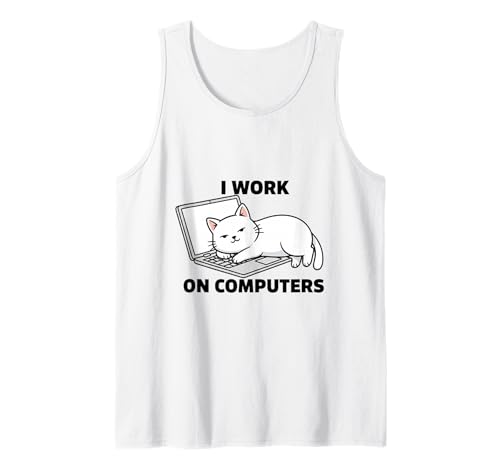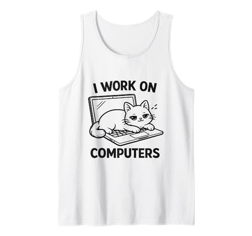 Funny I Work On Computers Cat Shirt Funny Computer Cat Tank Top