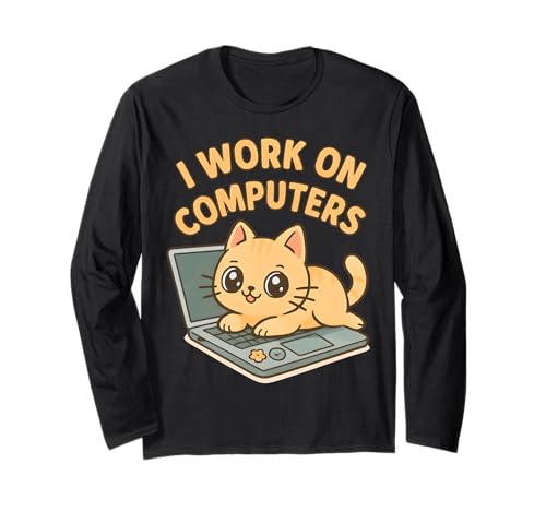 I Work On Computers - Funny Cat Long Sleeve T-Shirt