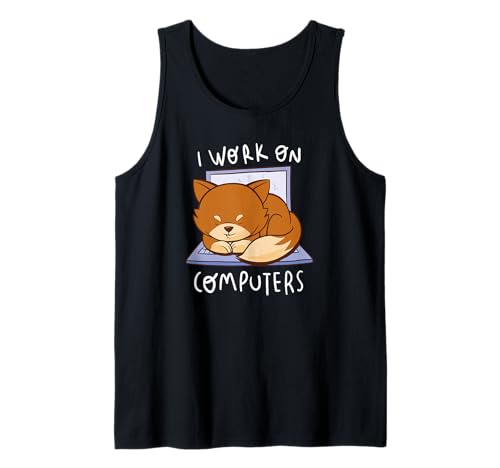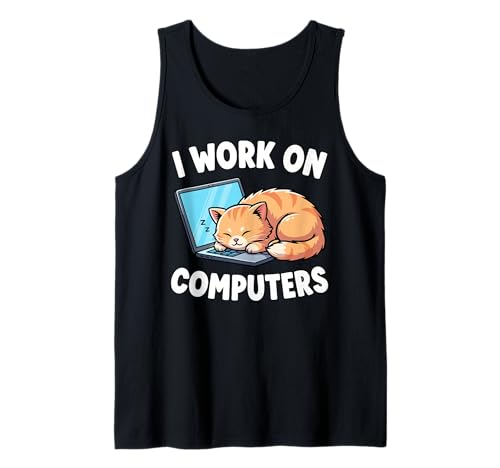 Sleeping Cat I Work on Computers Funny Geek Tank Top
