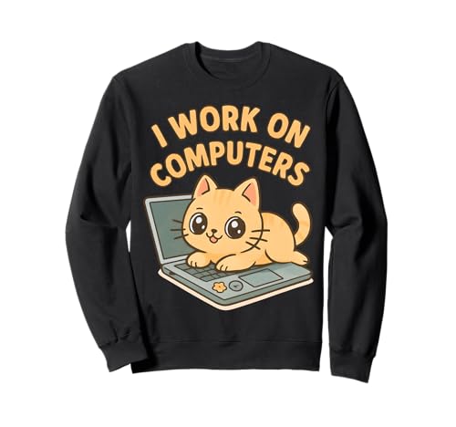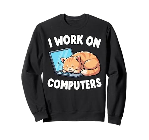 Sleeping Cat I Work on Computers Funny Geek Sweatshirt