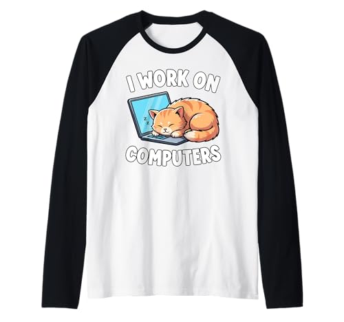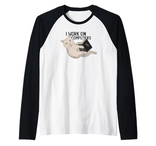 I Work On Computers - Funny Cat Raglan Baseball Tee