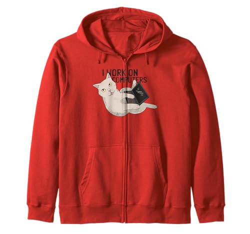 I Work On Computers Funny Cat Lover Kitty Laying Down 2025 Zip Hoodie