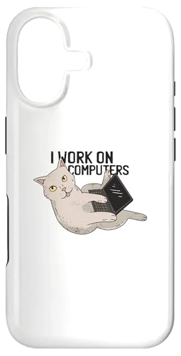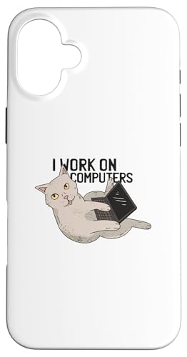 I Work On Computers - Funny Cat Case for iPhone 16 Plus