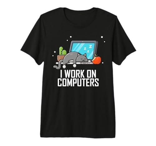 I Work on Computers Funny Cute Tech Coding Cat Working Premium T-Shirt
