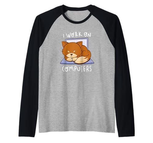 Sleeping Cat I Work on Computers Funny Geek Raglan Baseball Tee