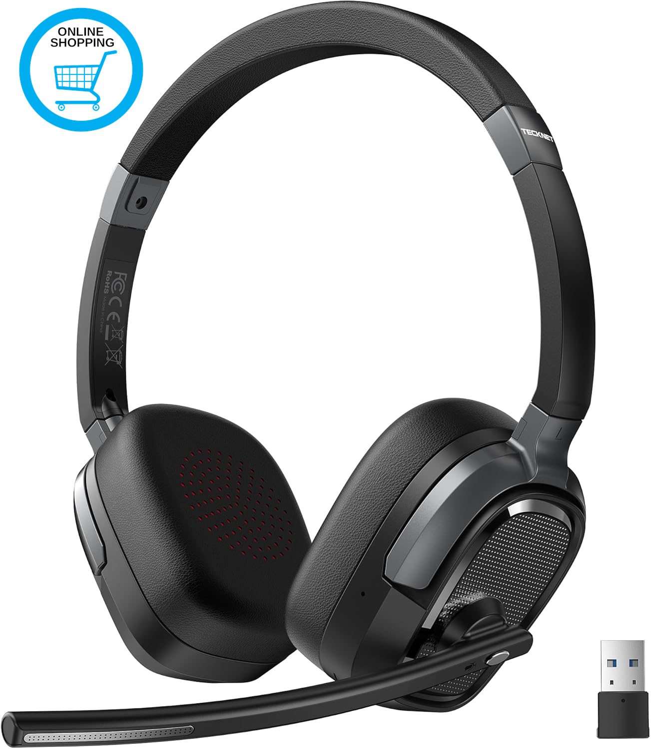 6.0 Bluetooth Headset, Wireless Headset with Microphone for Work, USB Headset wi