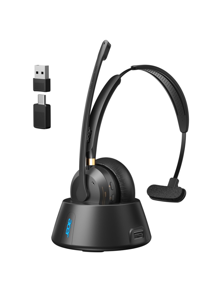 Acer Bluetooth 5.3 & USB 2.4G Dongle Wireless Headset for Work AI ENC Noise Cancelling Single Ear Work Headset with Charge Stand