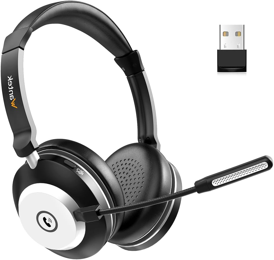 TECKNET Bluetooth Headset, Wireless Headset With Microphone Noise Cancelling & USB Dongle, Bluetooth Headphones with Charging Dock & Mute Button for Computer, Work, Phones, Office, Call Center