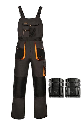 ART.MAS Men's Classic Bib and Brace Overalls, Grey-Orange, Multi-Pocket Work Dungarees with Knee Pads (34/36 Inch - 52 EU)