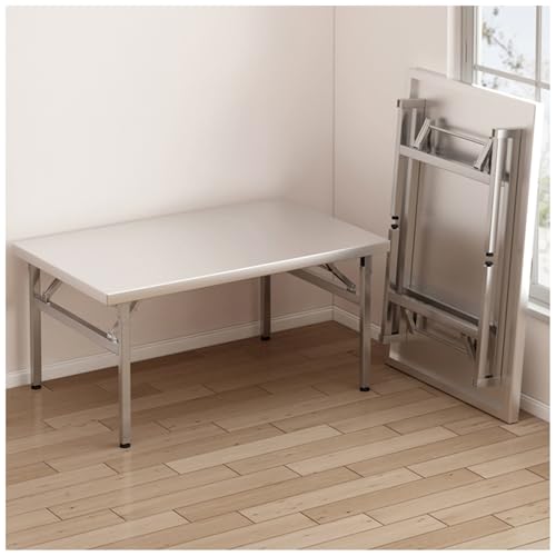 YIHANWUU Stainless Steel Folding Table Outdoor Picnic Preparation Table Stainless Steel Workbench Table Top Printed Design Easy to Clean Portable Metal Table Home Commercial Folding Table/100*60*55Cm