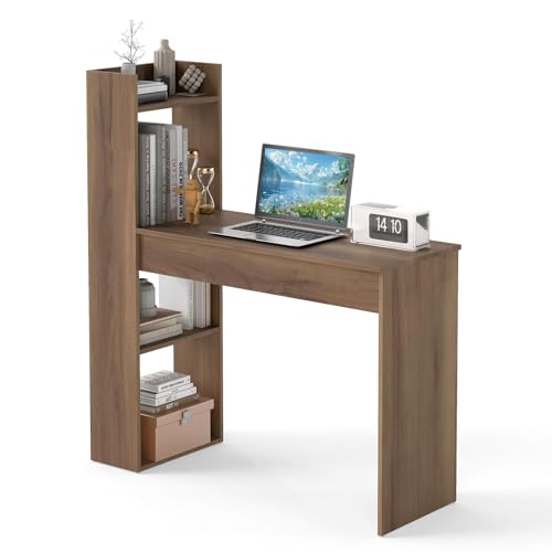 COSTWAY 110cm/122cm Computer Desk, Wooden PC Laptop Table Writing Workstation with 4/6-Tier Storage Bookshelves, Modern Home Office Working Study Desk (Knotty Oak, 110 x 40 x 121cm)