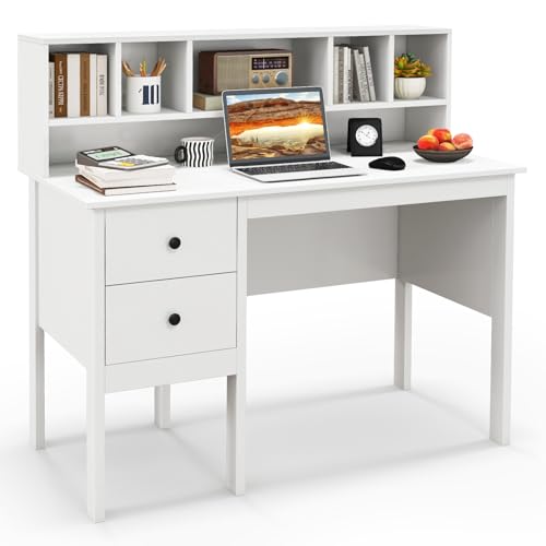 COSTWAY Computer Desk, 120CM Wooden Study Table Writing Workstation with Storage Shelves and 2 Drawers, Modern PC Laptop Table Working Desk for Home Office Bedroom