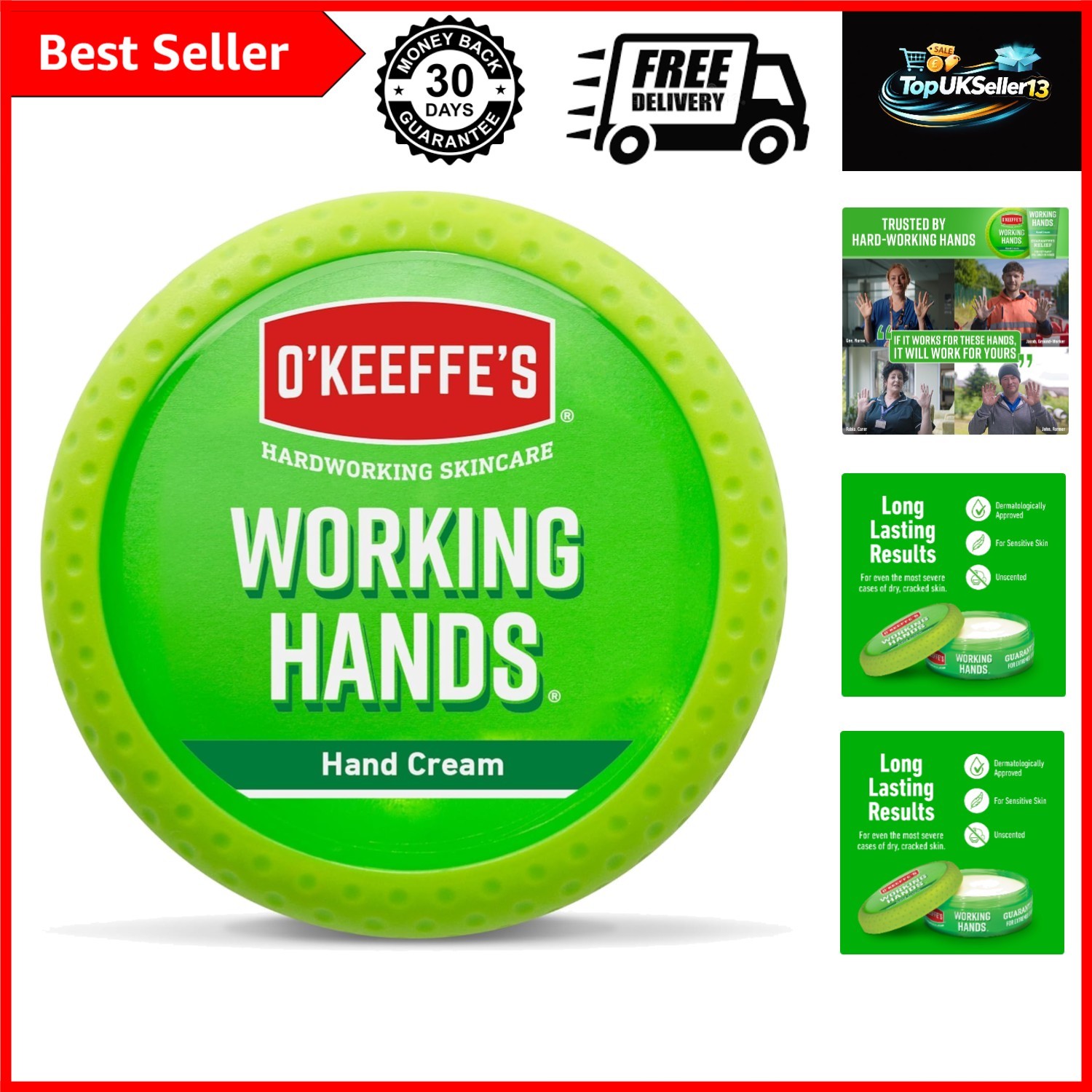 O’Keeffe's Working Hands, 96g Jar - Non-Greasy Hand Cream for Hydration Boost