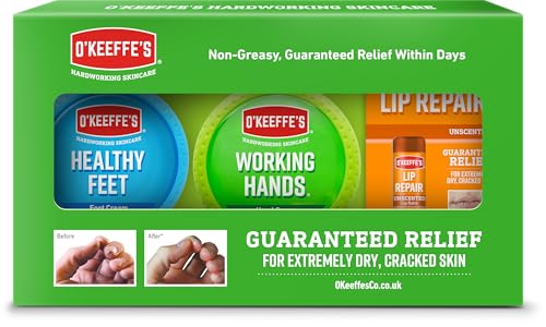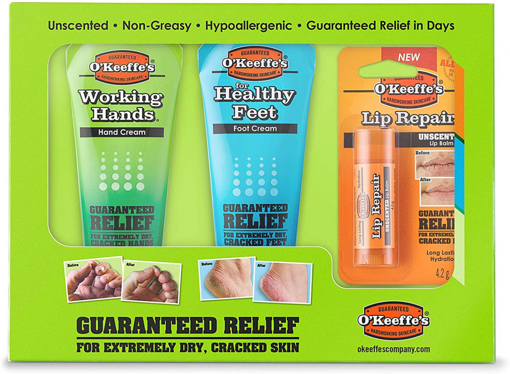 O'Keeffe's Skincare Gift Set - Includes Healthy Feet Jar 91g, Working Hands Jar 96g and Lip Repair Unscented Lip Balm 4.2g