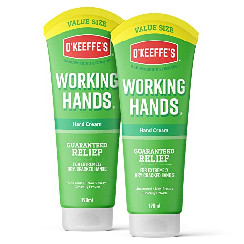O’Keeffe’s Working Hands Value Tube, 190ml (2 Pack) – Hand Cream for Extremely Dry, Cracked Hands | Non-Greasy, Unscented & Instantly Boosts Moisture Levels