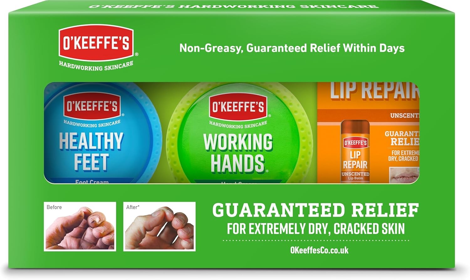 O’Keeffe’s Skincare Gift Pack - Working Hands 96g, Healthy Feet 91g and Lip Repair 4.2g