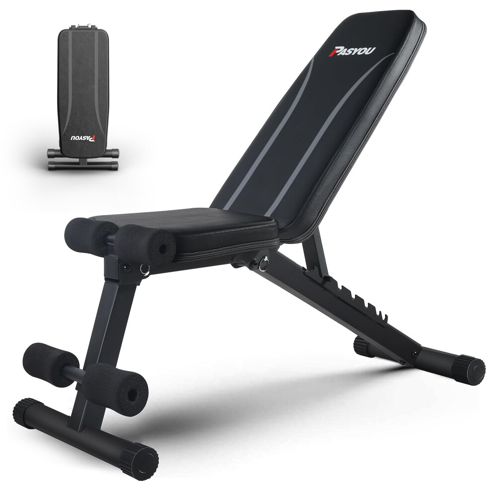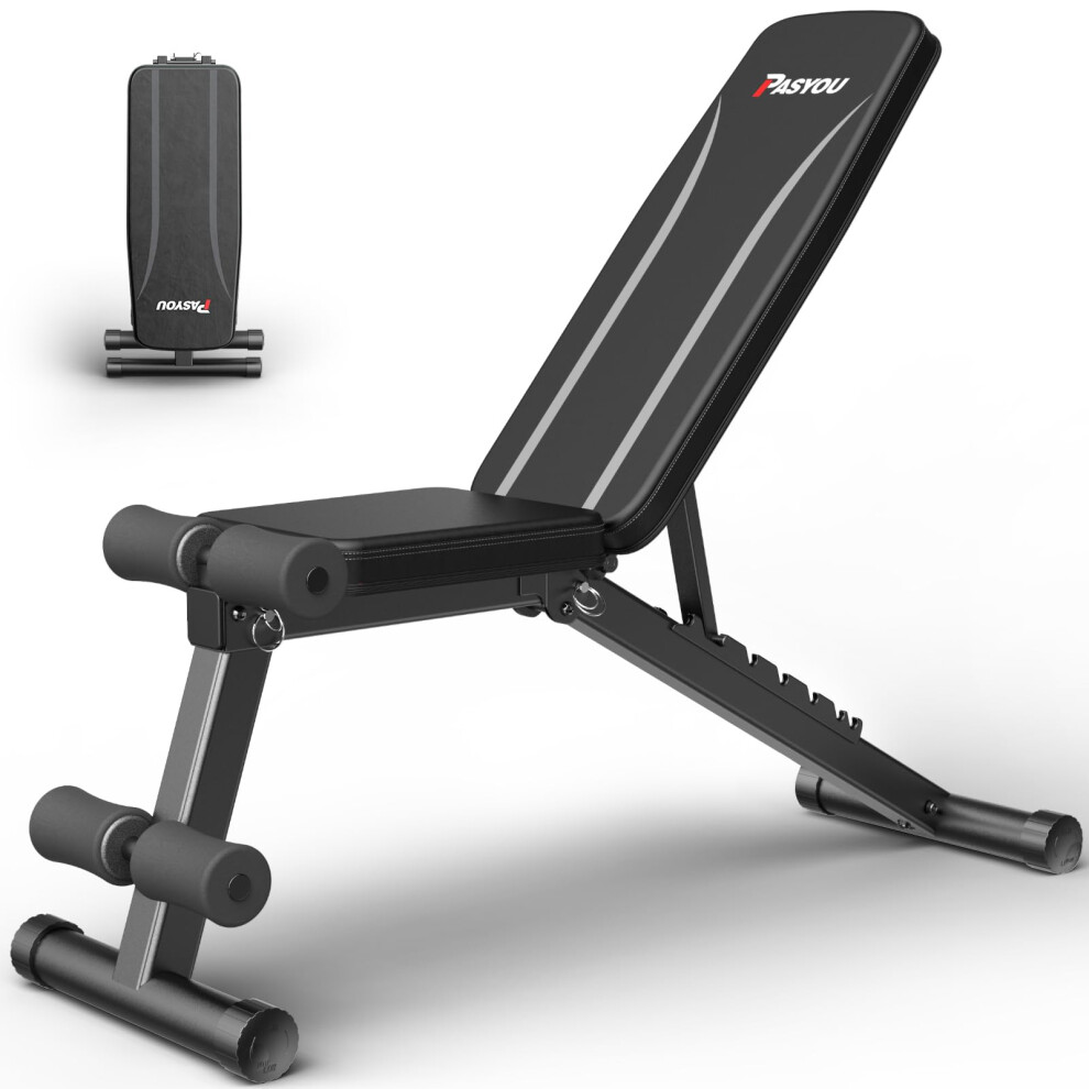 PASYOU Adjustable Weight Bench Full Body Workout Multi-Purpose Foldable Incline Decline Exercise Workout Bench for Home Gym