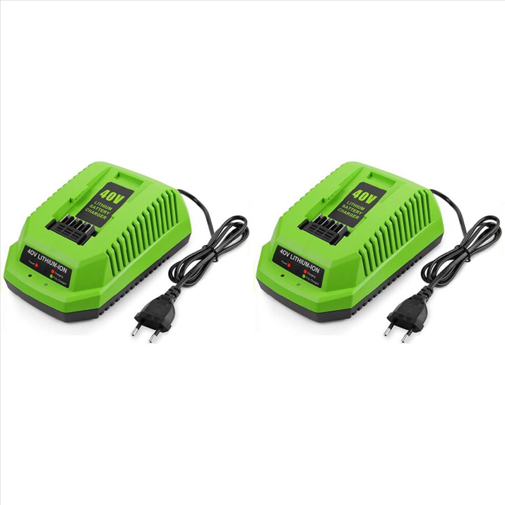 2X 40V Lithium Battery Charger for GreenWorks 29482 G-MAX 40V Li-Ion Battery 29472 29482 29652 G40825 EU Plug