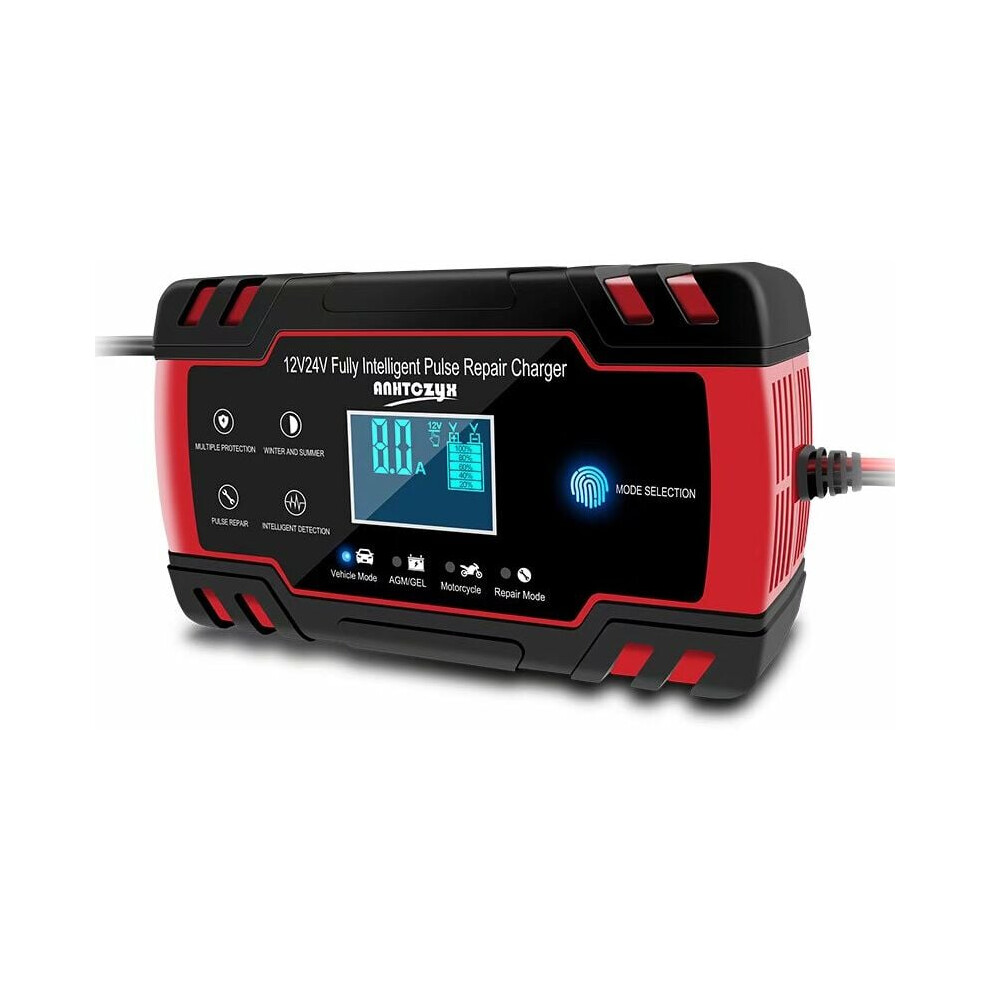 Compact Battery Charger 12V/24V, Works In Hot Summer Or Cold Winter, Ideal For Cars Trucks Motorcycles With Temperature Detection