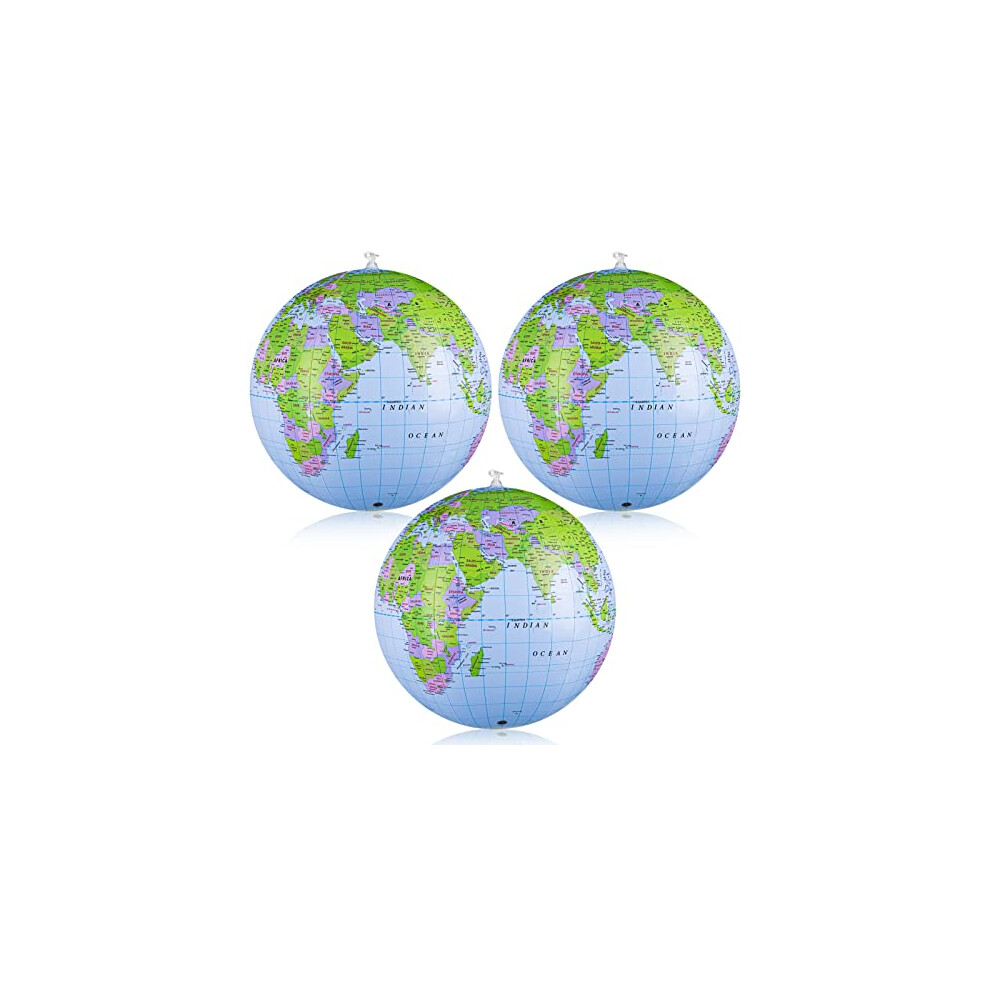 3 Pack Inflatable Globes World Map Globe Ball 16 Inches PVC Globe of The World Earth for School Office Beach Teaching Learning for Student Kids