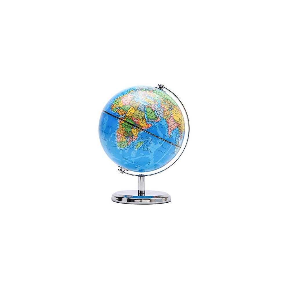 Exerz 20cm World Globe Political Map - Educational Globes Geographic - Stainless Steel Arc and Base - School Home (20cm diameter)