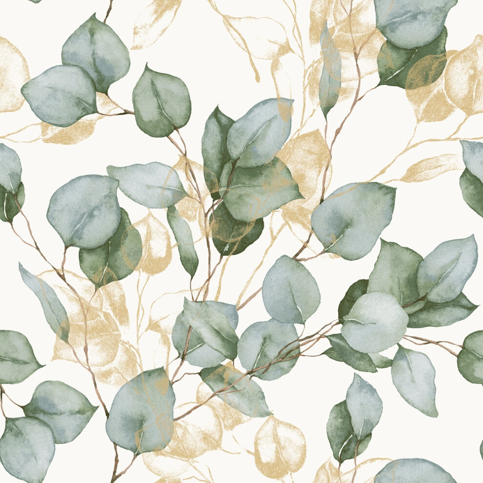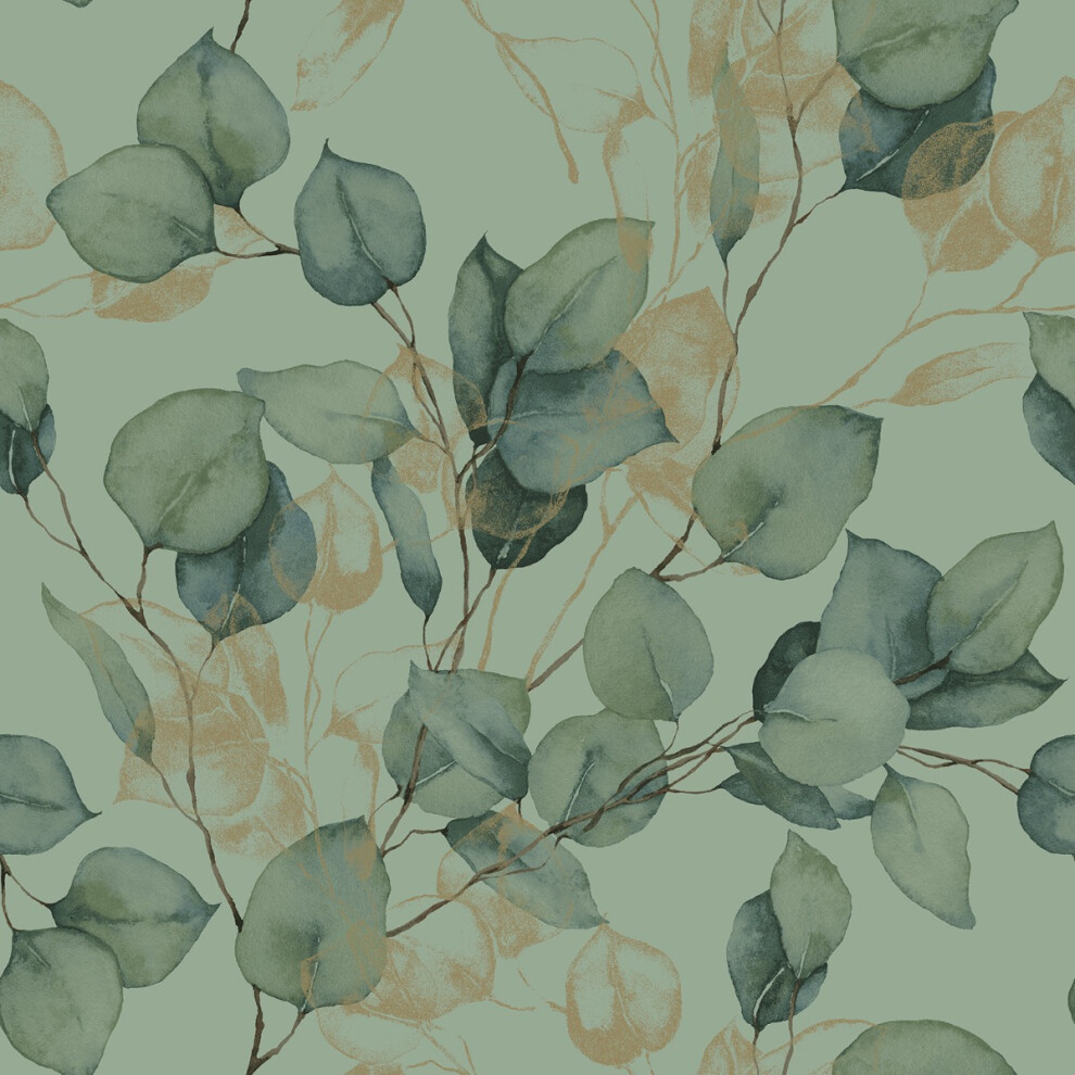 Eucalyptus Leaves Wallpaper Sage Green / Gold World of Wallpaper AF0035