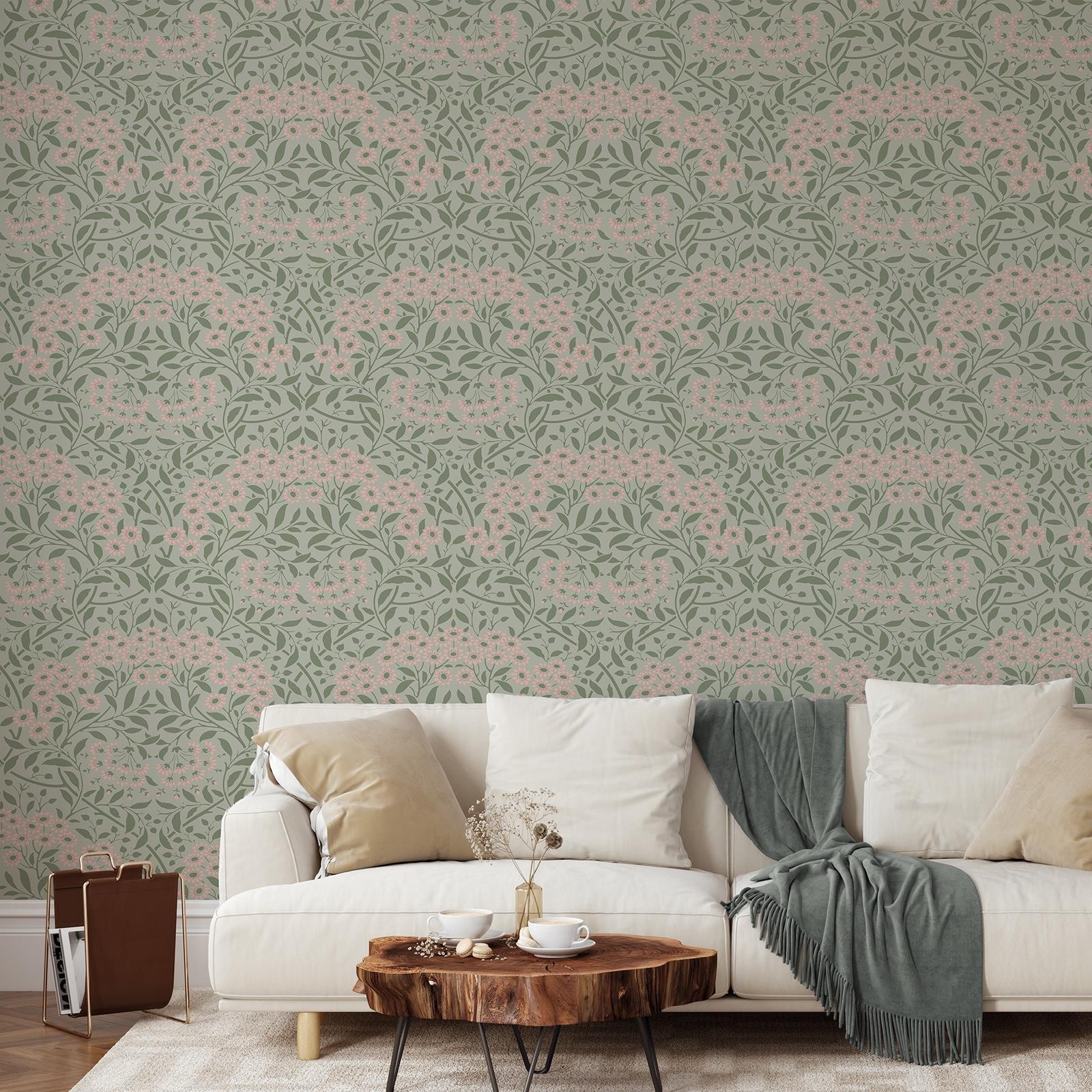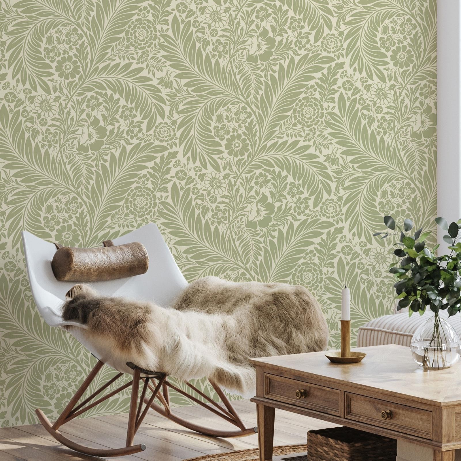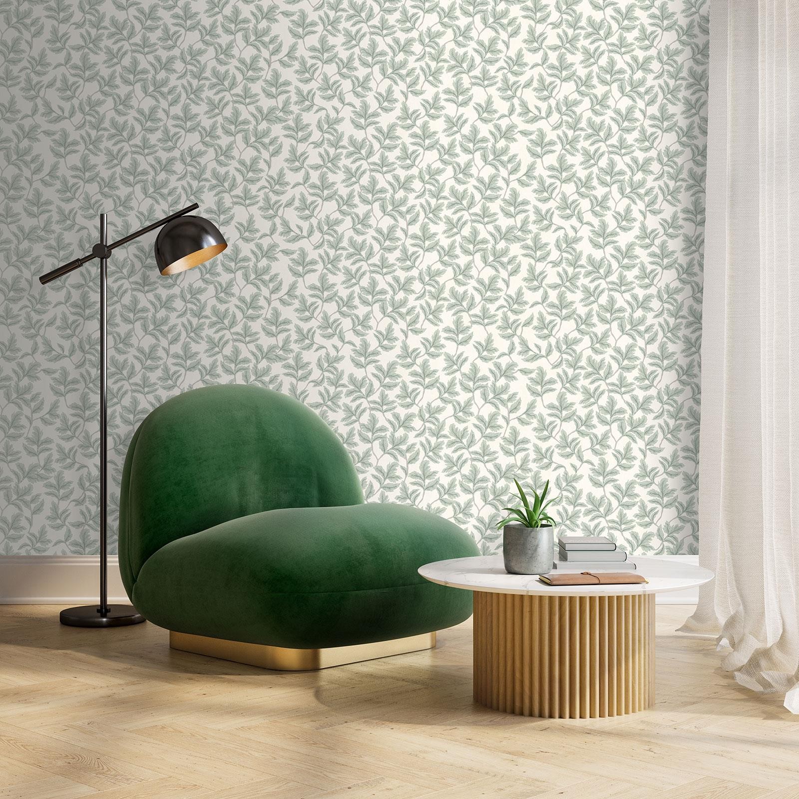 Florence Leaf Wallpaper Green Sage Cream Flowers Leaves World of Wallpaper 727