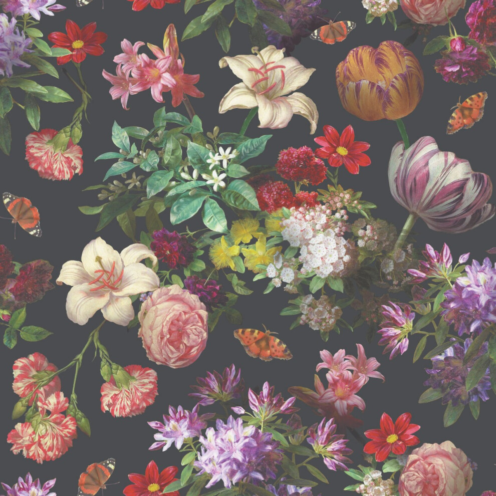 Brigette Floral Wallpaper Black and Multi World of Wallpaper WOW138