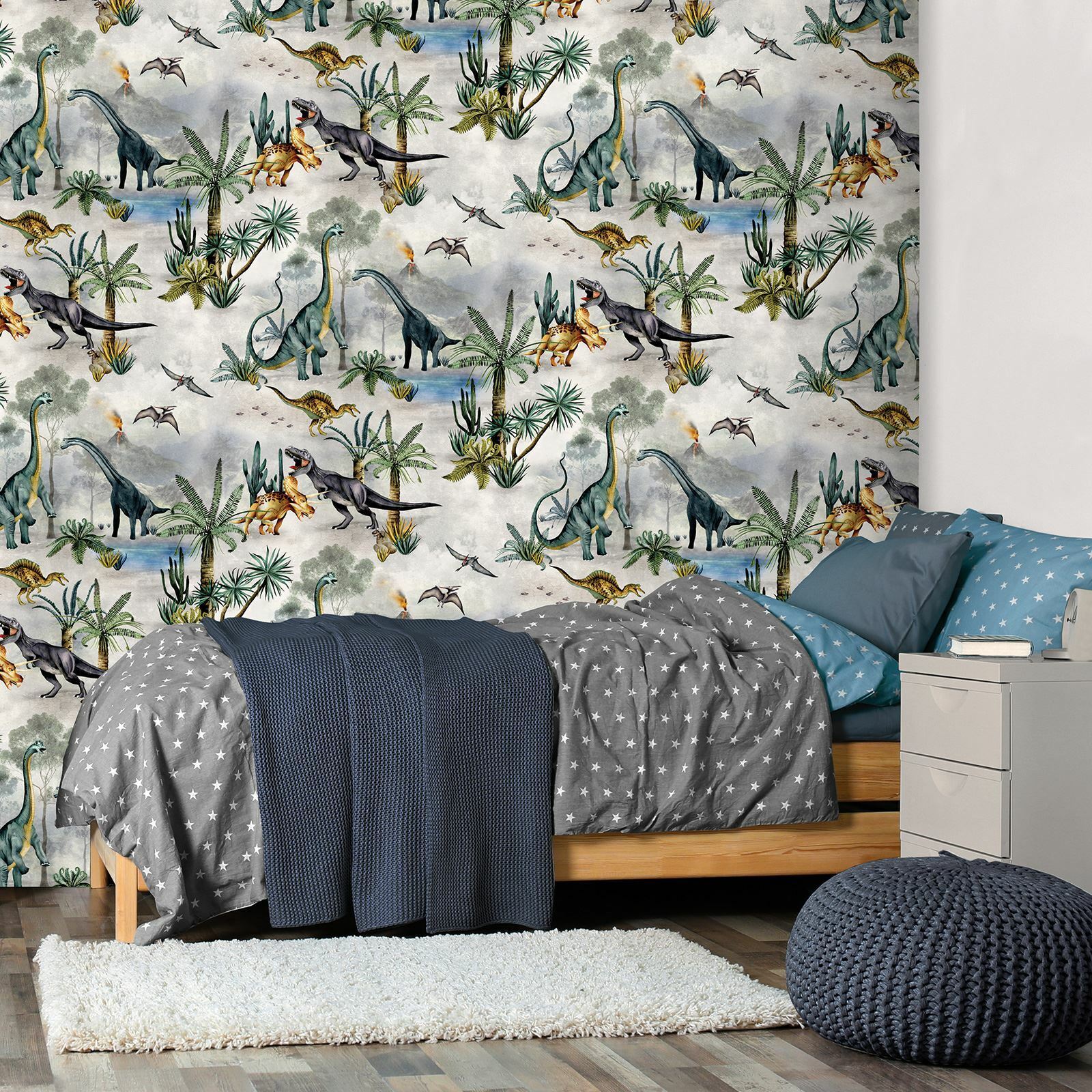 Dino Kingdom Wallpaper Children's Dinosaur World of Wallpaper Grey Multi 7700