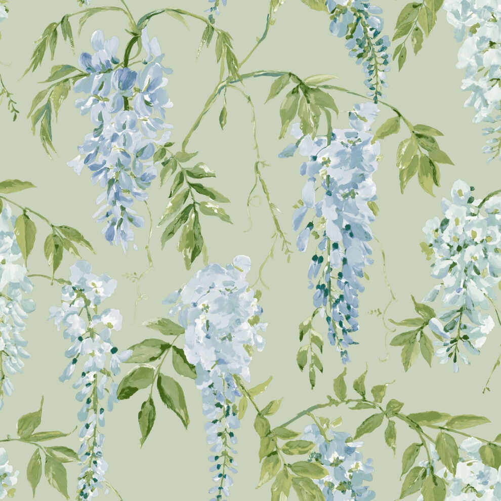 (Sage Green/Blue) Wisteria Wallpaper World of Wallpaper