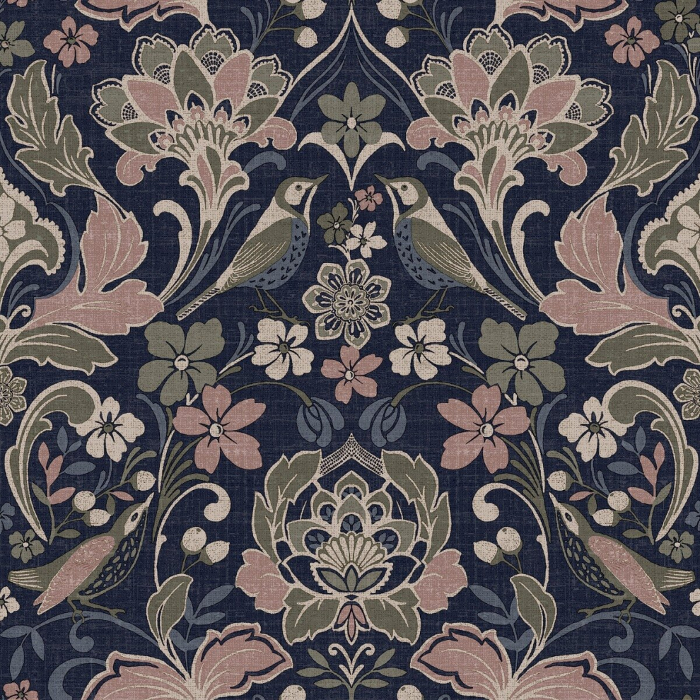 Folk Floral Wallpaper Navy / Pink / Olive World of Wallpaper 946104