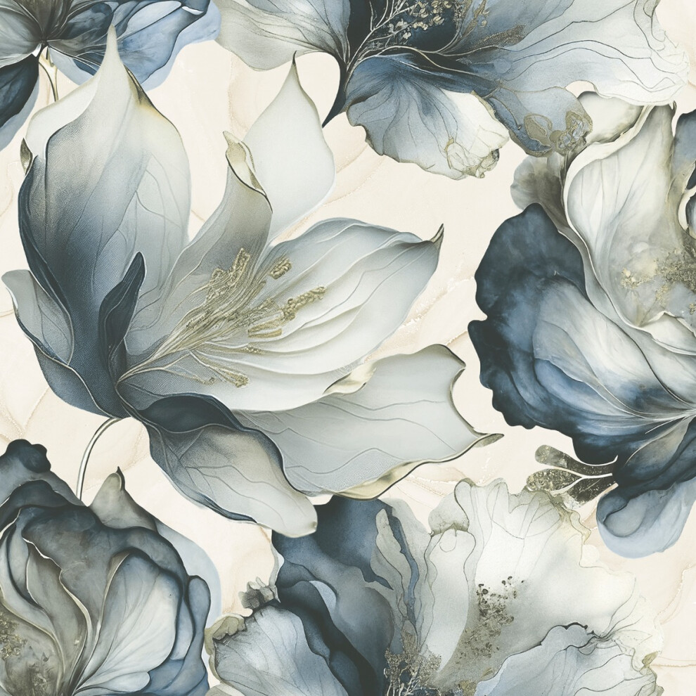 (Blue/Gold) Elysian Floral Wallpaper World of Wallpaper
