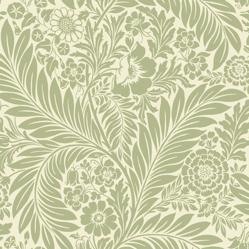 (Sage Green /Cream) Florence Leaf Wallpaper World of Wallpaper