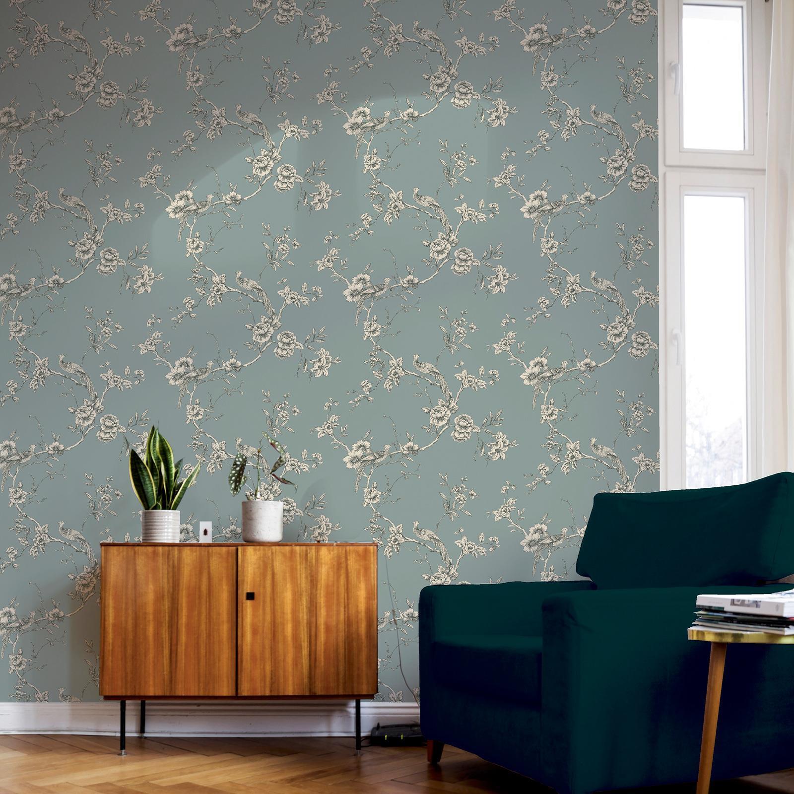 Chinoise Floral Trail Oriental Birds - Blue 900102 - World of Wallpaper