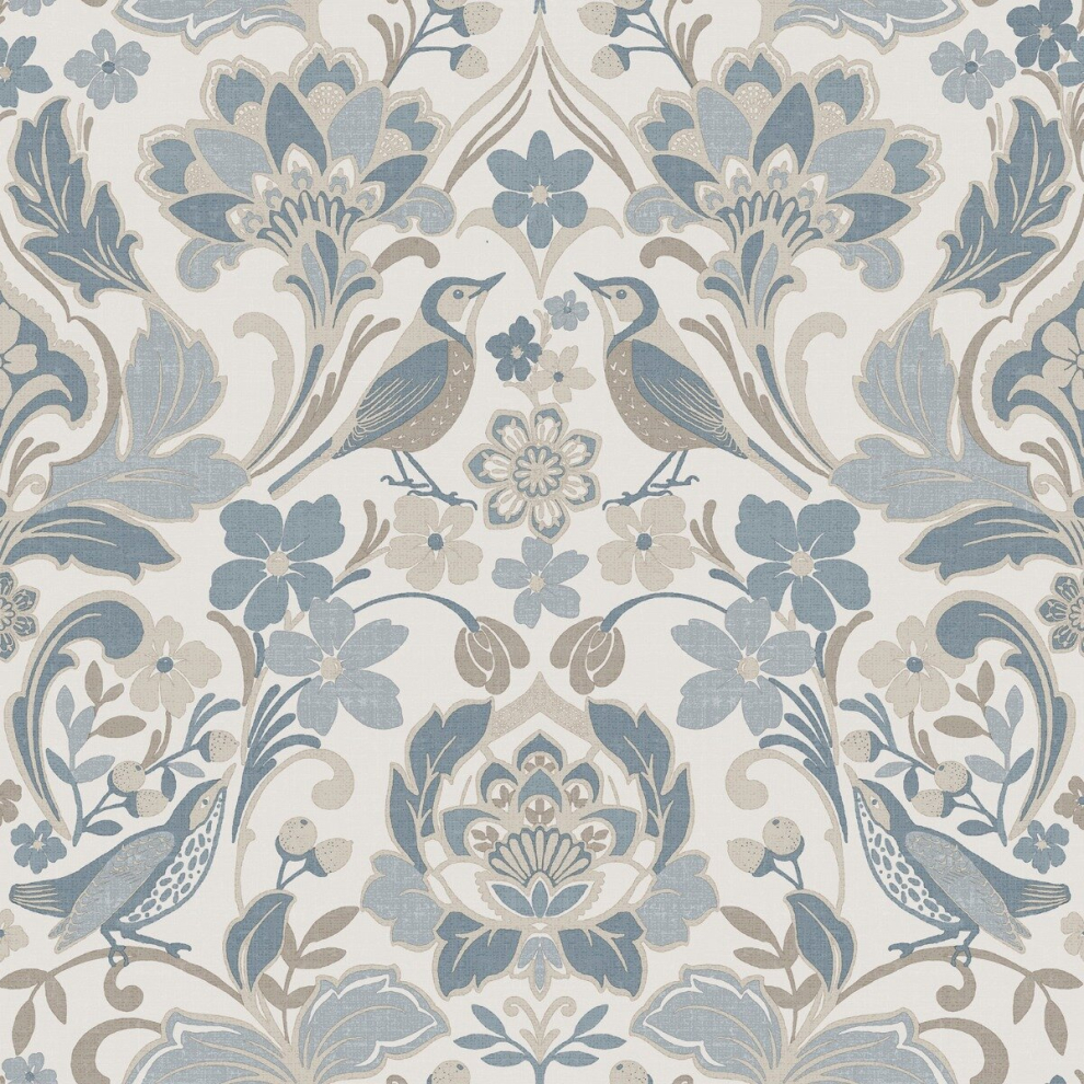 Harlen Woodland Damask Wallpaper Duck Egg World of Wallpaper 50341