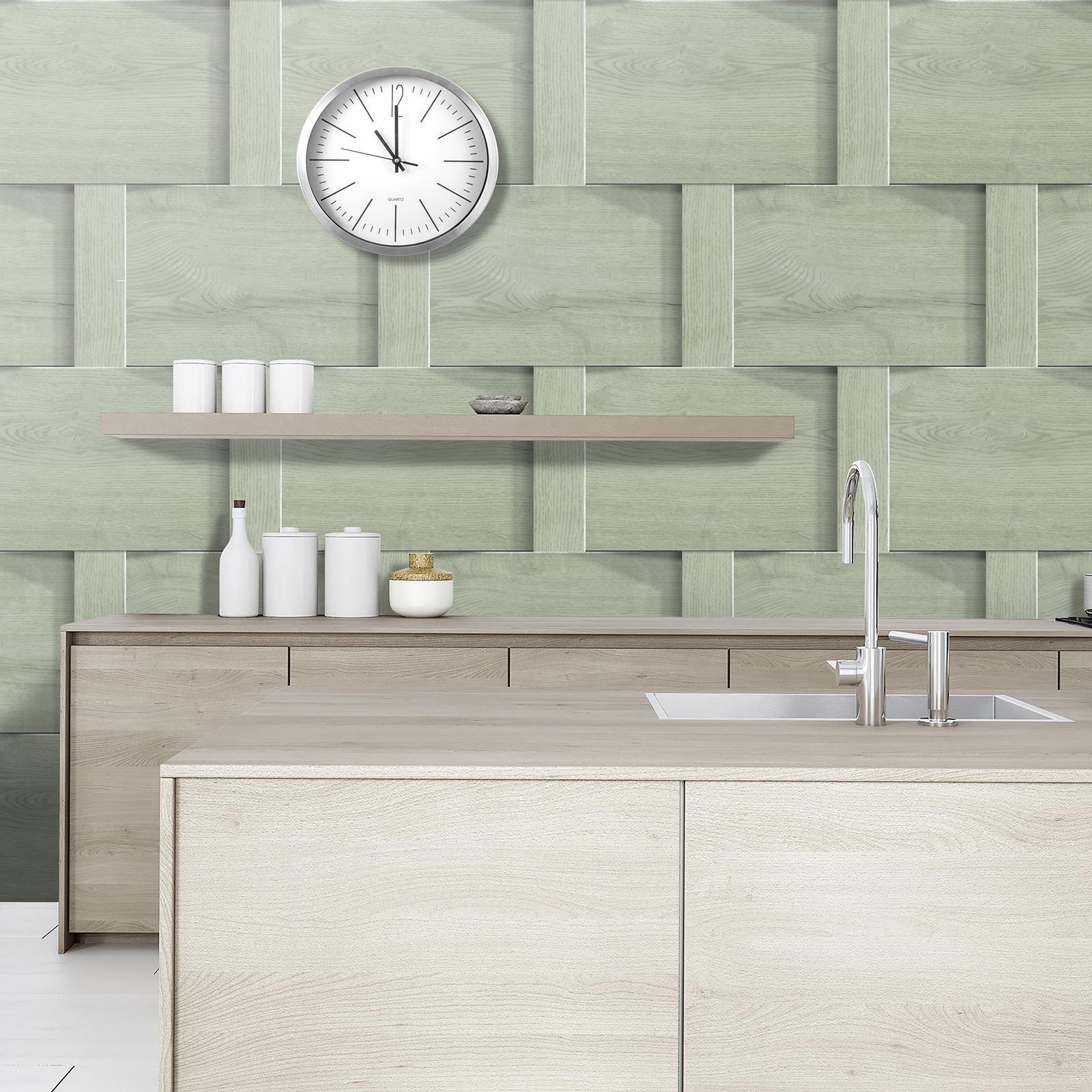 Wood Panel Wallpaper Harrow Weave Smooth Sage Green 3106 World of Wallpaper