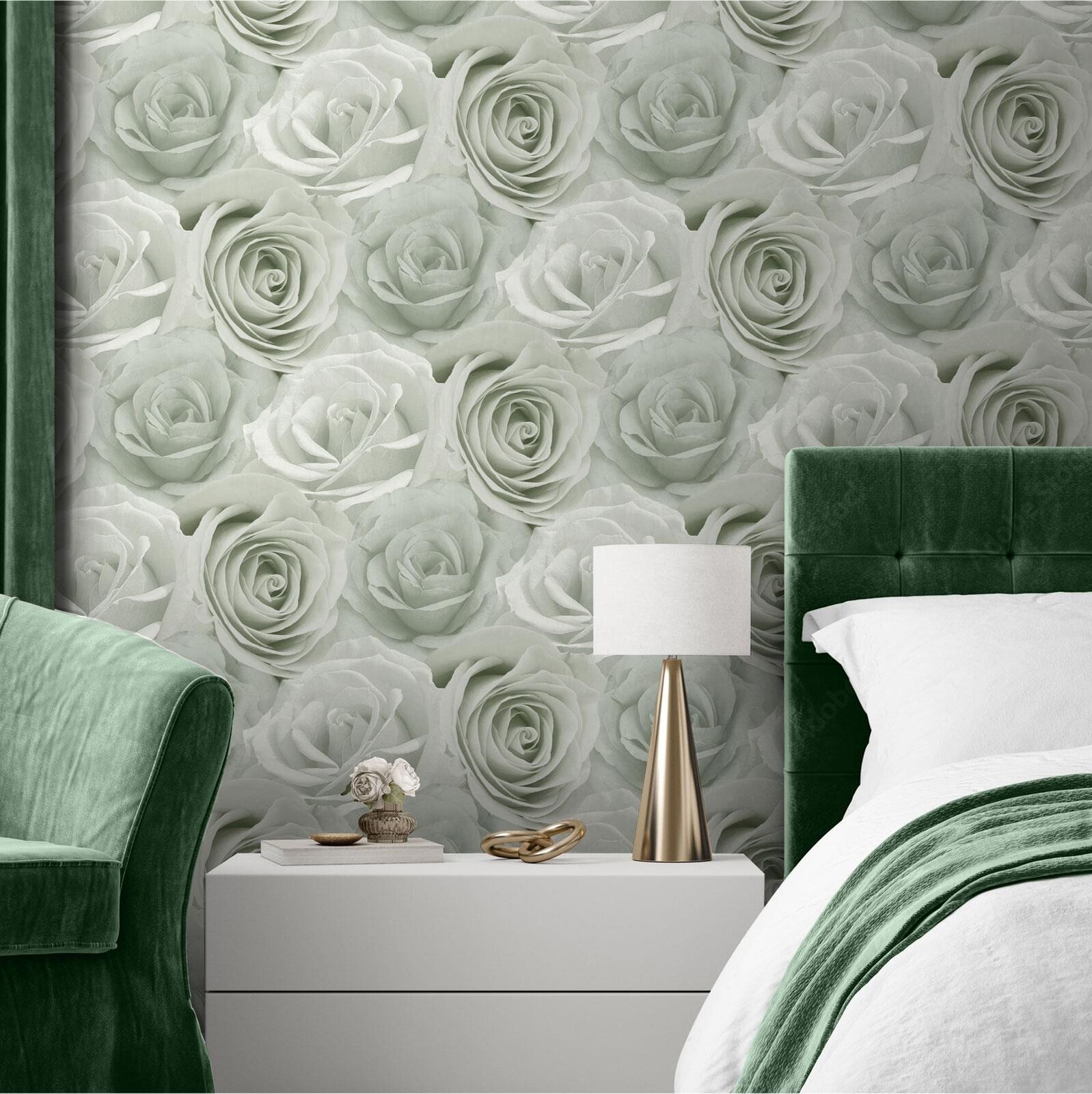 Melany Rose Flowers Wallpaper AF0016 Sage Elegant Mica Shine World of Wallpaper