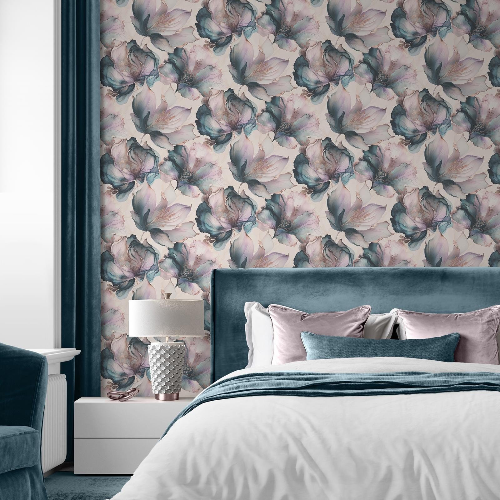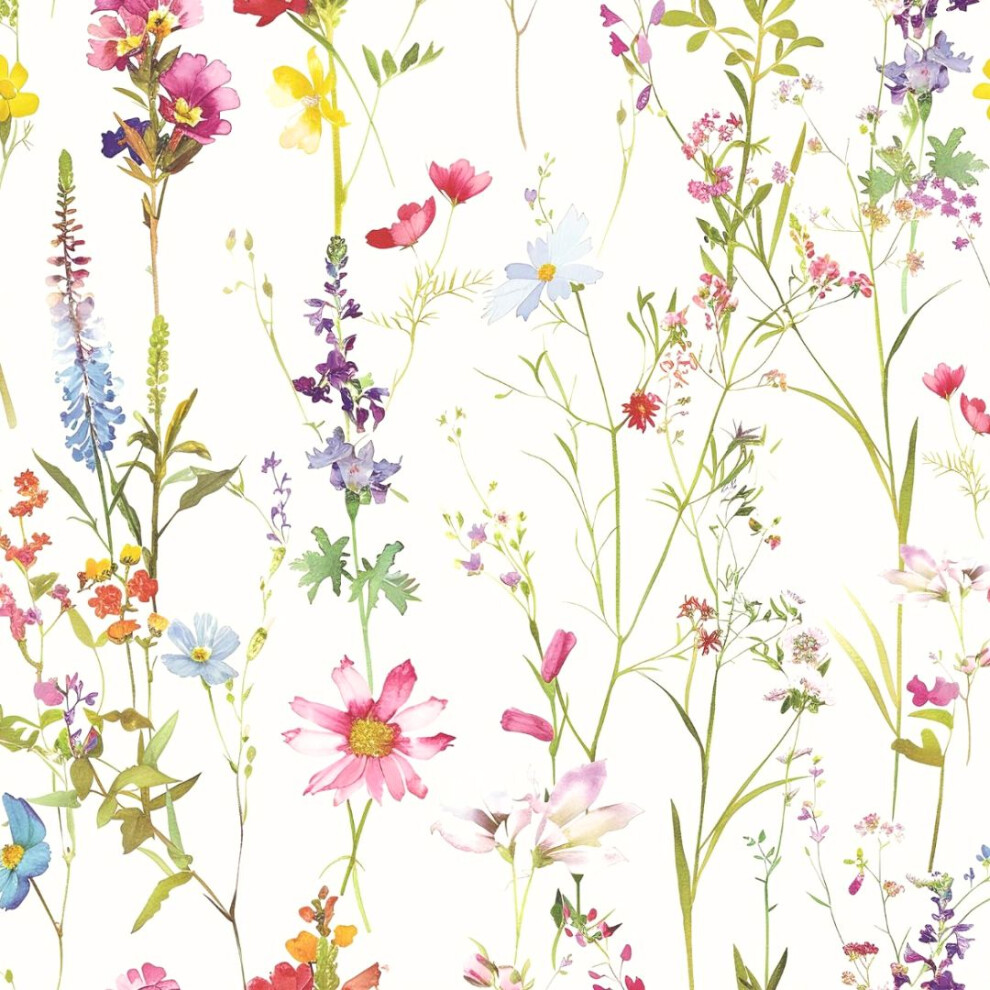 World of Wallpaper Elsie Watercolour Floral Wallpaper - Perfect for Living Rooms, Bedrooms, and Kitchens Spring Flowers White/Pink, Purple, Blue, Green AF0038