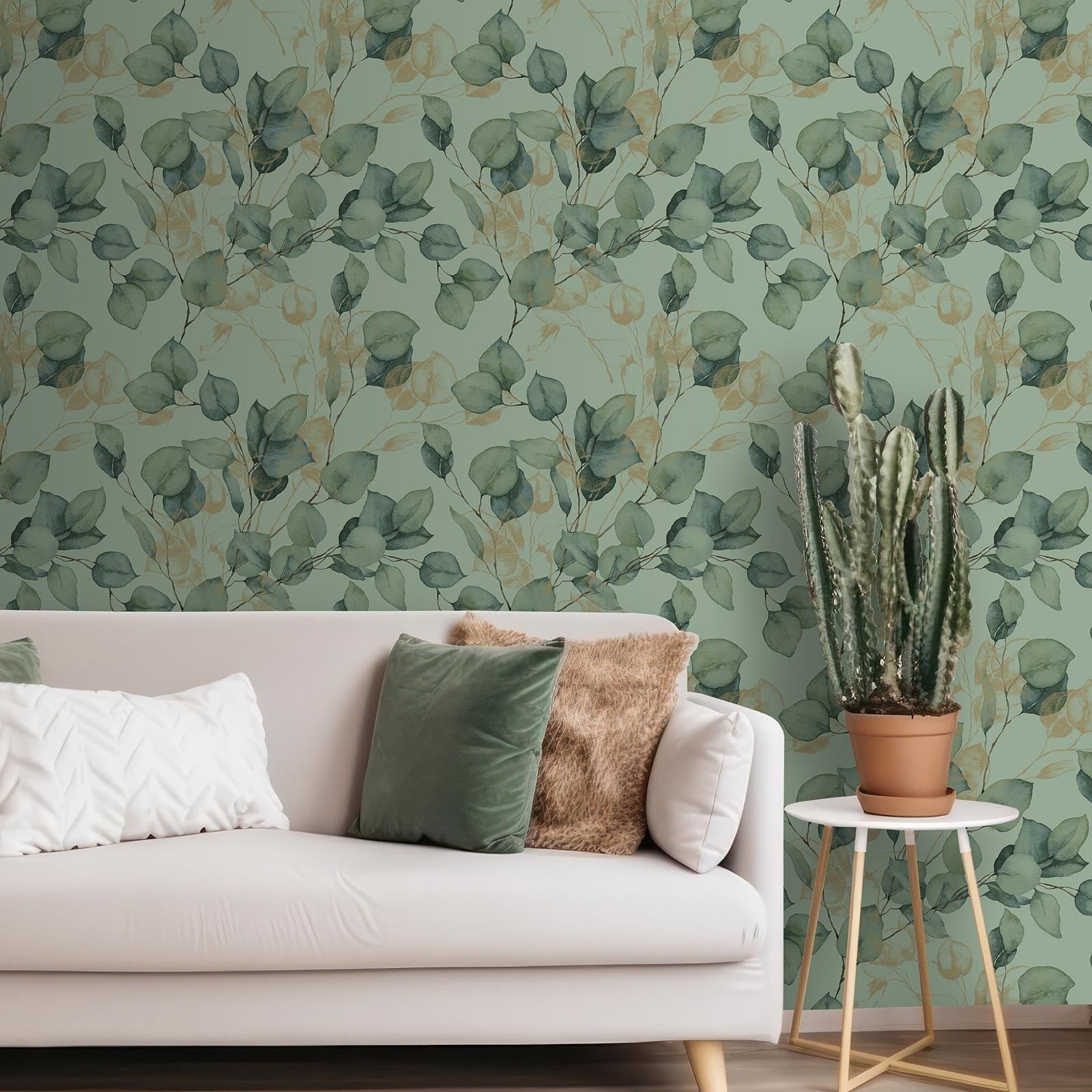 Leaves World of Wallpaper Eucalyptus Leaf Trail Sage Green / Gold AF0035