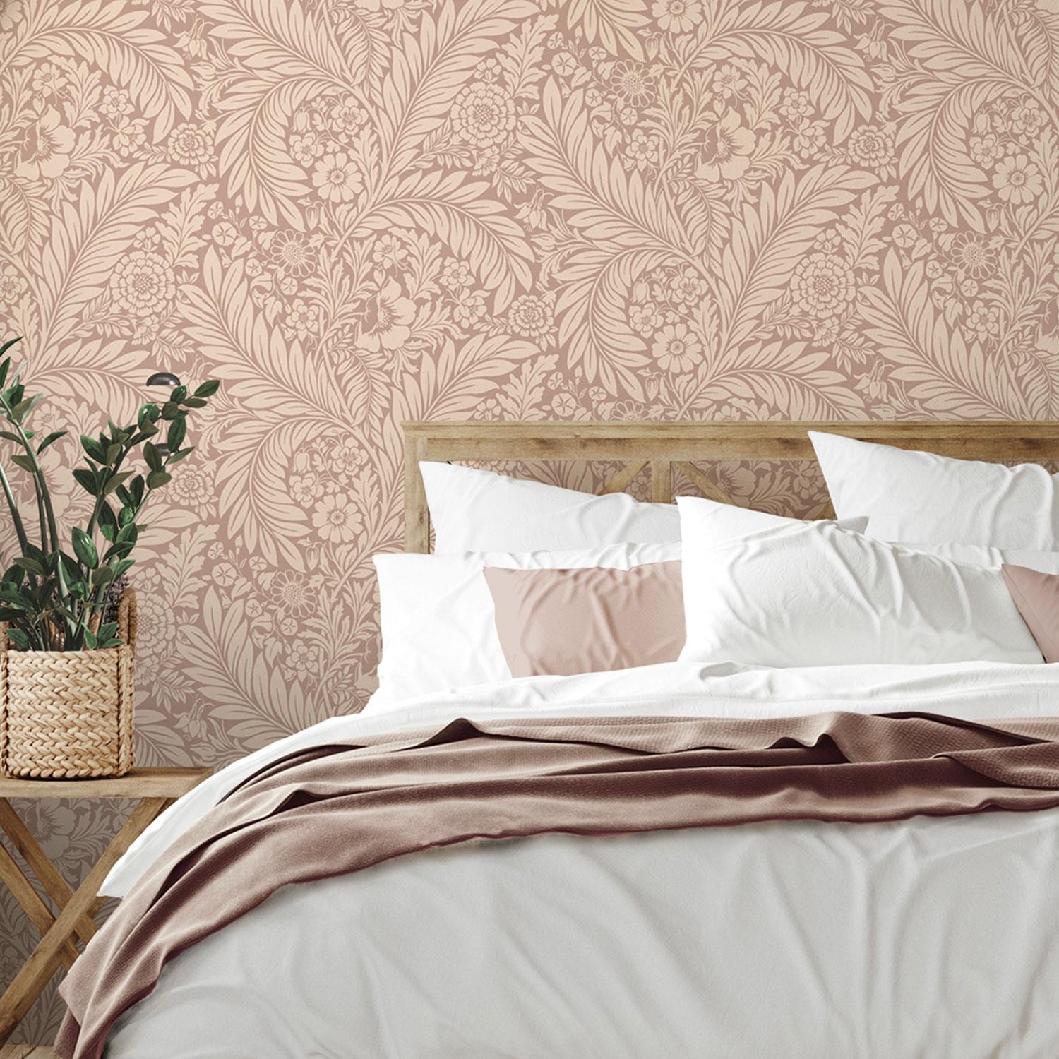 Florence Leaf Wallpaper Blush Pink Flowers Leaves World of Wallpaper 728