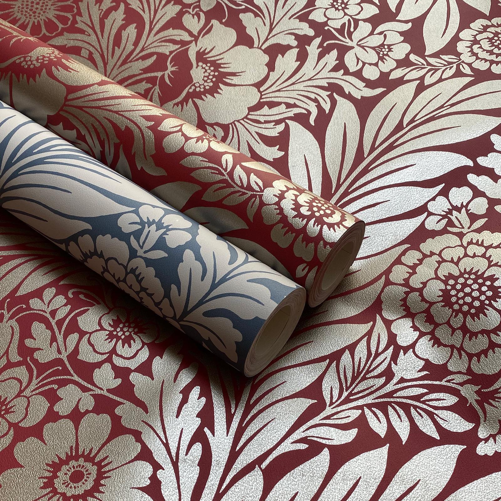 Florence Leaf Wallpaper 725 Red & Gold Floral Trail Metallic World Of Wallpaper