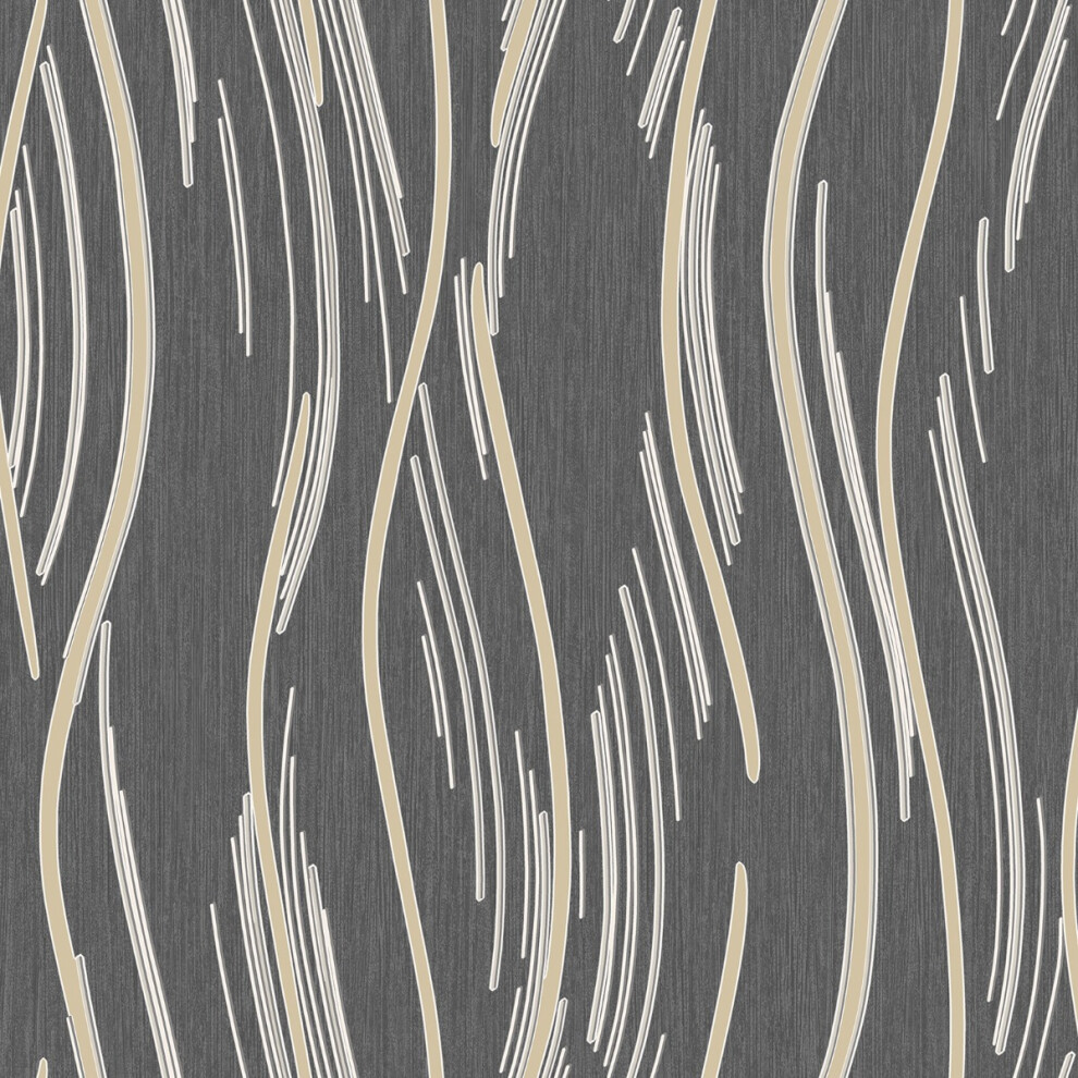 (Black/Gold) Shimmer Wave Wallpaper World of Wallpaper